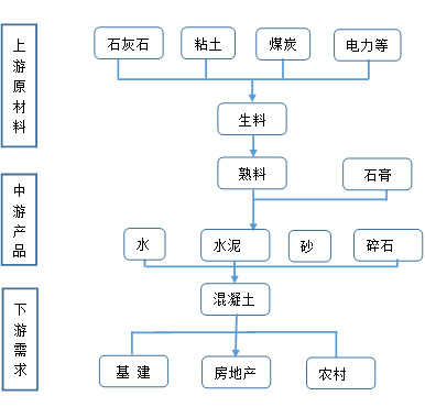 水泥是大宗原材料商品,是典型的周期性、投資拉動(dòng)型產(chǎn)業(yè),與宏觀經(jīng)濟(jì)的周期與固定資產(chǎn)的投資波動(dòng)密切相關(guān)。作為建筑工業(yè)三大基本材料之一的水泥,素有“建筑工業(yè)的糧食”之稱。上游是包含石灰石、粘土和煤炭等原材料;下游為混凝土并服務(wù)基礎(chǔ)設(shè)施建設(shè)、房地產(chǎn)以及水利、農(nóng)村等下游終端需求。