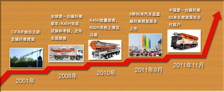 壯大中國工程機(jī)械,打造世界一流品牌,是中聯(lián)重科始終堅守的使命和追求。以高新技術(shù)為核心競爭力,中聯(lián)重科在世界工程機(jī)械舞臺上創(chuàng)造一項又一項奇跡。2011年11月18日,又一個將銘刻進(jìn)世界工程機(jī)械發(fā)展史的偉大時刻即將到來:第一臺碳纖維62米長臂架泵車將交付中國客戶,這意味著工程機(jī)械碳纖維應(yīng)用的新時代已經(jīng)到來,世界工程機(jī)械將由此邁入一個全新的發(fā)展階段。